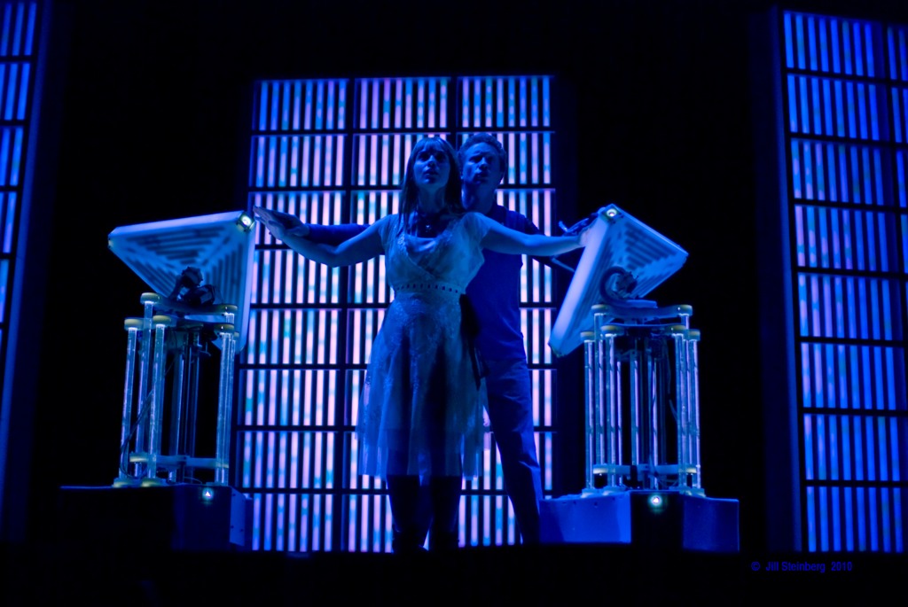 Miranda est encerclée par un défilé des Misères du monde : victimes de famine, torture, crime, et maladie. Dans le sillage des Misères, la silhouette de Simon, tel un simulacre de son corps humain, émerge des ombres. Miranda et Simon ont une ultime confrontation au cours de laquelle Simon explique son choix de vivre dans Le Système : « Maintenant le seul recours est d’évoluer, hors de la chair et dans Le Système. Les autres, même quelques-uns, ne comptent pas – c’est toi-même, c’est toi ! » Il fait signe à Miranda: “Viens dans le monde de lumière. » Miranda hésite à suivre Simon dans Le Système. Ses doutes persistent : « Le corps de cette mort est qui je suis, c’est mon esprit… Qui serai-je ? Et que verrai-je quand mon corps ne sera plus ? » Simon rentre dans Le Système. Miranda hésite. Elle se tourne vers le public, répétant une note aigüe montante tandis que le son tourbillonne autour d’elle : « Qui ? Quoi ? Quand ? Comment? Lumière. Mort. Seule. Vivante. Vis. » La lumière augmente jusqu’à devenir aveuglante. La musique émane depuis la voix de Miranda dans toutes les directions, remplissant l’espace et s’étendant bien au-delà.