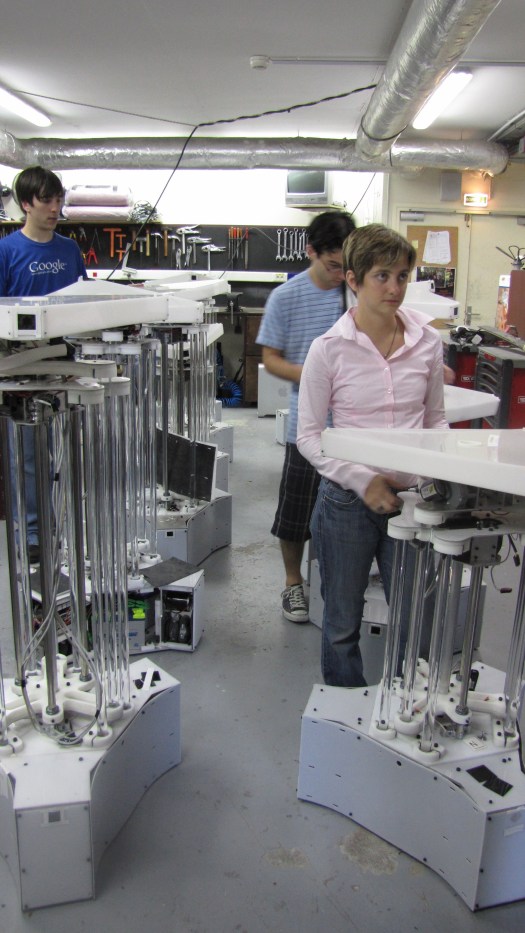 I traveled to Monaco almost all of yesterday with the robot team, which consists mostly of undergrad researchers (or UROPs) from MIT. After we arrived at the Monte Carlo Opera House, the UROPs headed right to the workshop, where they unpacked the robots and assessed the extent of the work to be done: