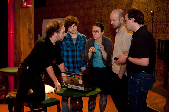 At last the story can be told! For the past several months, the Opera of the Future team has been cranking away on a top-secret project to create an enhanced version of Sleep No More, the runaway hit theater experience currently playing in New York City. Last week, they beta tested the system with live audience members. Each was paired with an online participant. The twist: Neither knew about the other. We’re not giving away too much by revealing that bit of information, because there remains so much for participants to discover once they are inside the world of Sleep No More. The New York Times Arts blogger Dave Itzkoff reported on his experience in yesterday’s New York Times: A Guinea Pig’s Night at the Theater.