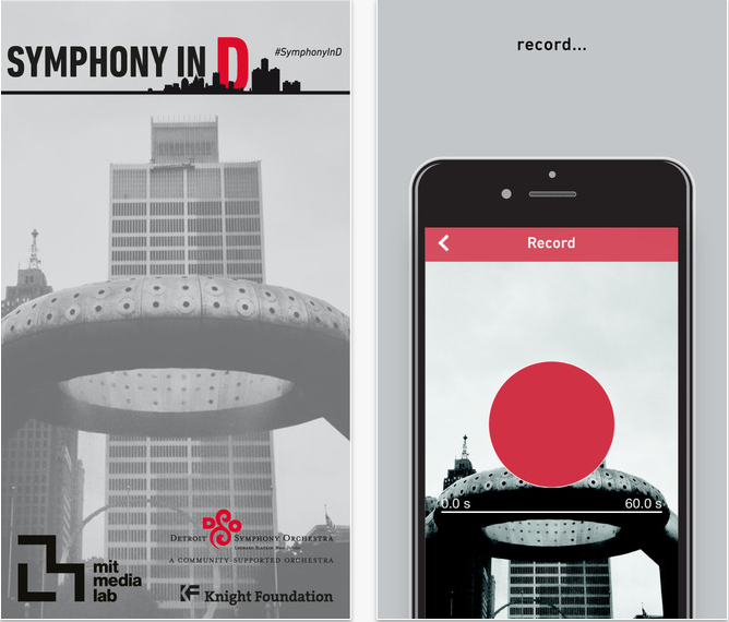 The Detroit Symphony Orchestra (DSO), in partnership with Tod Machover at the Massachusetts Institute of Technology (MIT) Media Lab and the John S. and James L. Knight Foundation, released two free apps that allow citizens of Detroit and metropolitan locals to submit sounds and personalized mixes to the Symphony in D project.